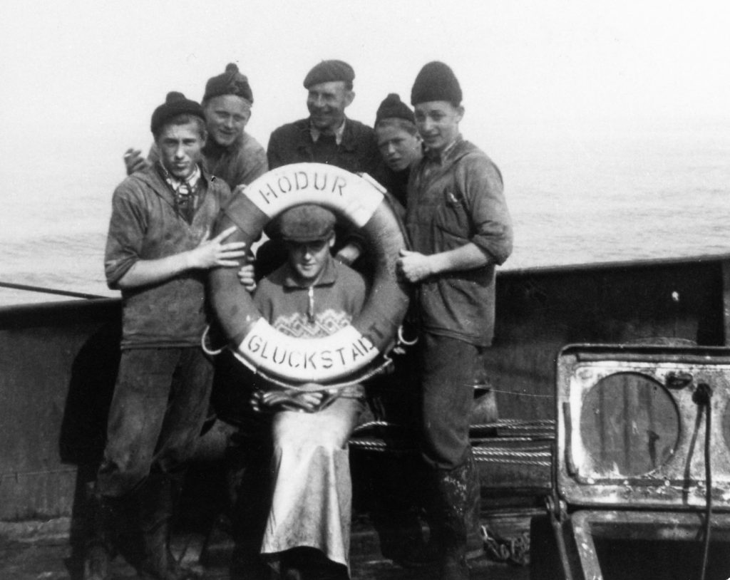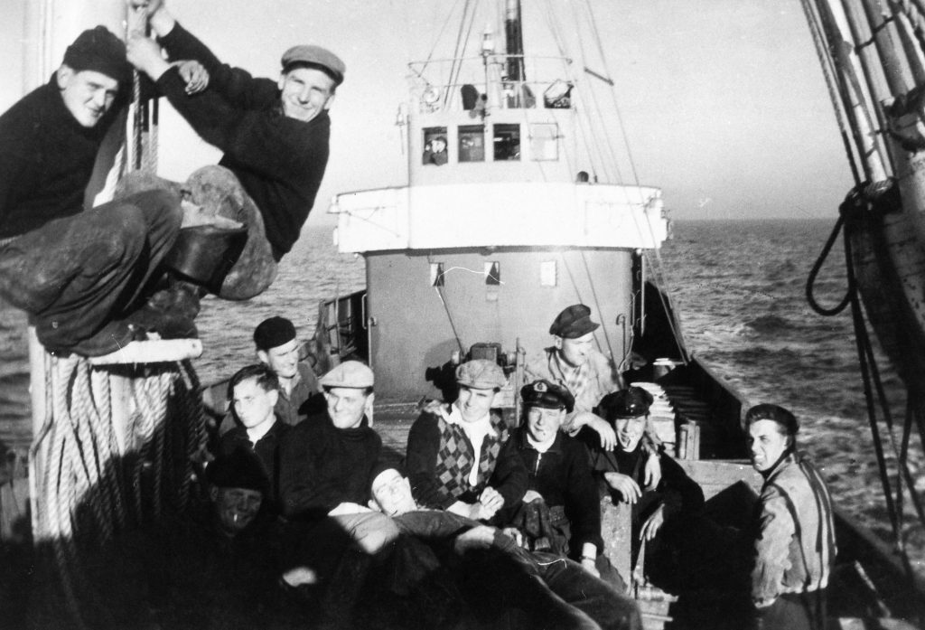 Die Besatzung des eisernen Motorloggers Balder in den 1930er Jahren.