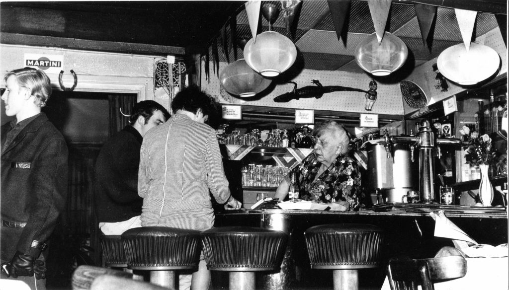 So ein Landgang endete oft in der legendären Glückstädter Gastwirtschaft „Zum blauen Wal“. Die Besitzerin Helene Fock (hinter dem Tresen) beförderte Matrosen, die sich nicht benahmen selbst hinaus. 1964 von Helmut Stubenrauch fotografiert.