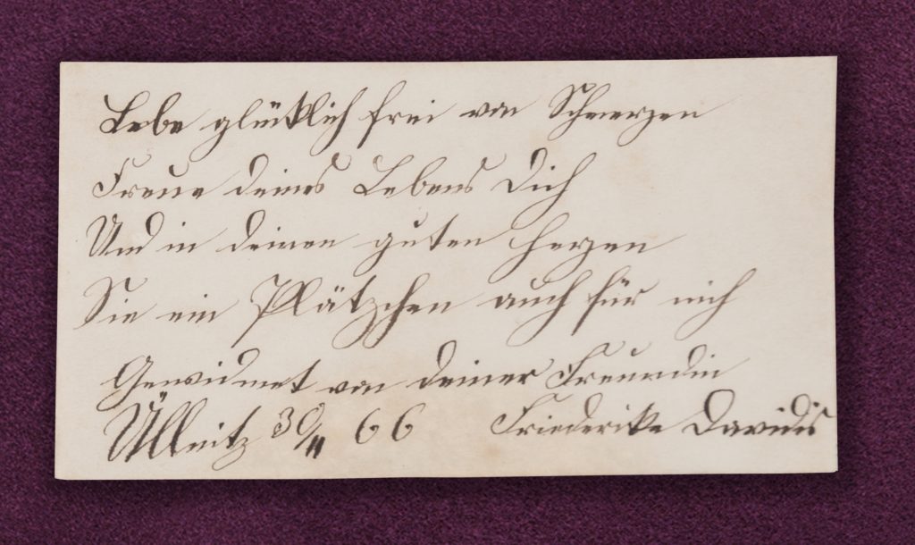 Im 18. und besonders im 19. Jahrhundert werden diese Büchlein eine über den Kreis von Schülern und Studenten hinaus verbreitete Mode, auch ein Herzensbedürfnis, denn die Entfernungen waren schwer zu überwinden und mancher Nahestehende kam für Jahre aus den Augen. Diese Blätter waren Lebensbegleiter ihrer Besitzer, -das sieht man aus späteren Zusätzen, die das weitere Schicksal der Freunde – Beruf, Wohnort, Heirat oder Tod – vermerken. Es gab Sammlungen geeigneter Texte und gedruckter Vorlagen für die wenig geübten. Bestimmte Motive wie Anker, Lyra, Urne, Rosen und Vergissmeinnicht kehren immer wieder.